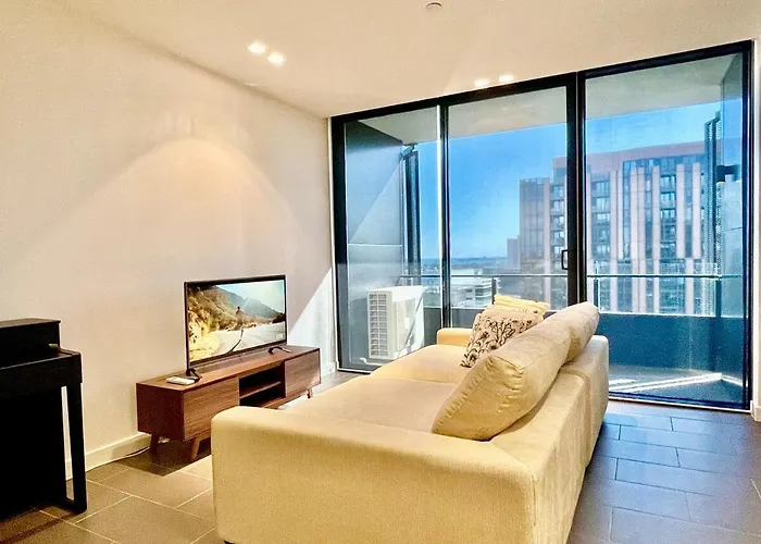The Elm - 2Beds 2Bath, Free 2Xparking, Pool & Gym Apartment Melbourne is located 2.2 km from the Melbourne Cricket Ground and 18 minutes' walk from the Crown Melbourne. Boasting a location right around the corner from the Victoria Barracks Melbourne, this apartment provides guests with a hot tub.